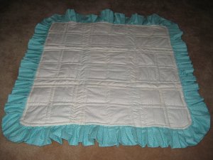 Looks totally cute. Good job. I can never machine quilt without some bumps. I just have decided that is how life is. The baby doesn’t know anyway.