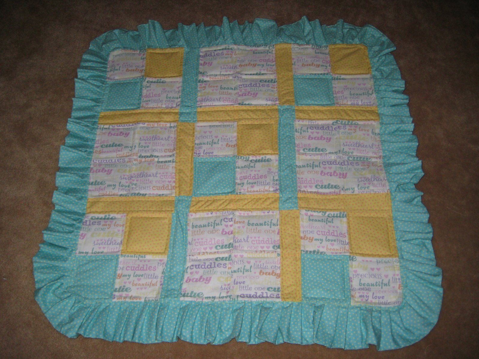 Looks totally cute. Good job. I can never machine quilt without some bumps. I just have decided that is how life is. The baby doesn’t know anyway.
