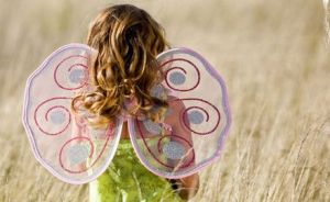 She had long curly hair, and was running around a backyard wearing butterfly wings. She was dancing barefoot, and she was so sweet.