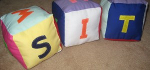 It took a whack of felt, cotton, thread and stuffing — not to mention those hours of my life spent ironing, piecing, and hand-sewing (hours which I will never get back) — but the alphabet blocks are finished!