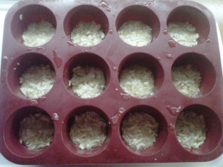 | Pour it into the cups and pat gently, so the chicken is smooth on top. |