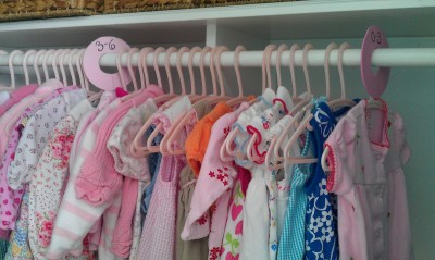 In case you’re wondering, dresses are an entirely separate category. They’re all hung in her closet — right up to 18-month and 2+ dresses — with little foam closet dividers that I made in about four seconds.