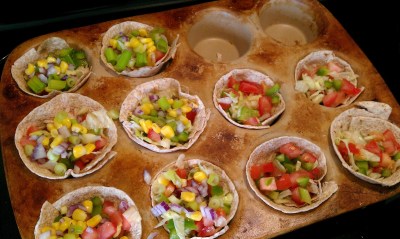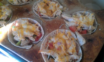 Here is a super-easy recipe I “invented” (read: I’m sure I saw the idea somewhere, but didn’t actually follow a recipe when I threw it all together) called Cheesy Chicken Veggie Cups.