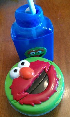 I also added these gems we already owned (but they were also originally from the Dollar Store). Hooray for snack cups and sippy cups!