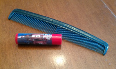This little boy LOVES makeup, so he was thrilled to get his very own Cars lipbalm. And he’s been really into combing his hair lately, so I bought a big $1 package of combs and tossed one in the bag. It’s adorable to see him combing his hair in church.