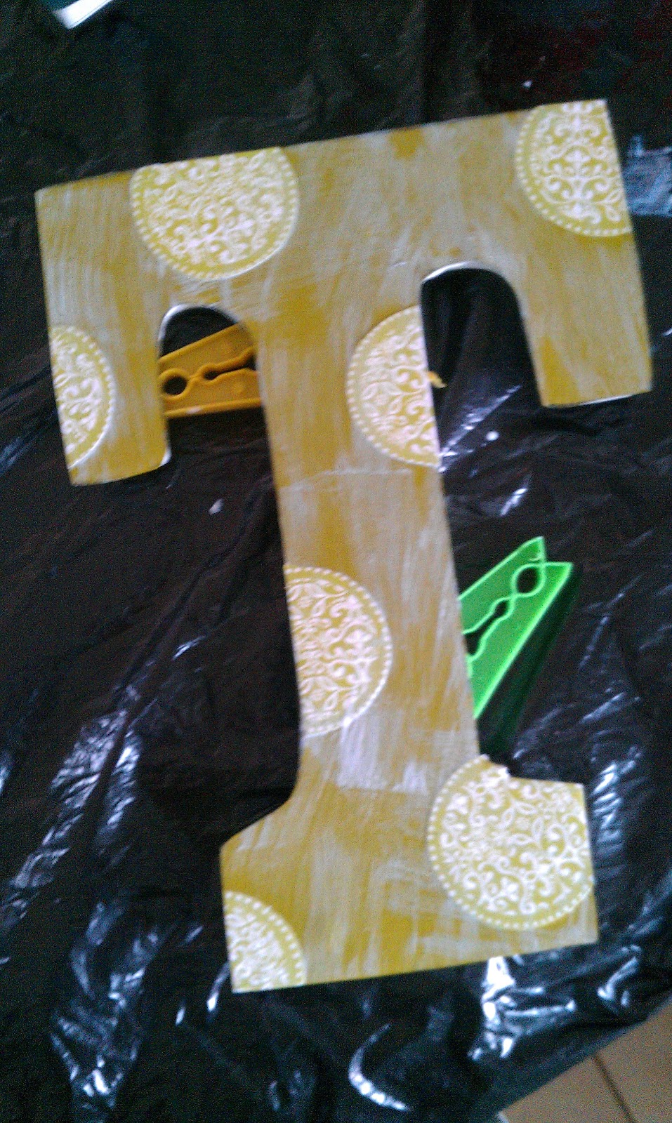 | … then I smoothed down the paper cut-out. But wait! This “T” looked a little plain … |