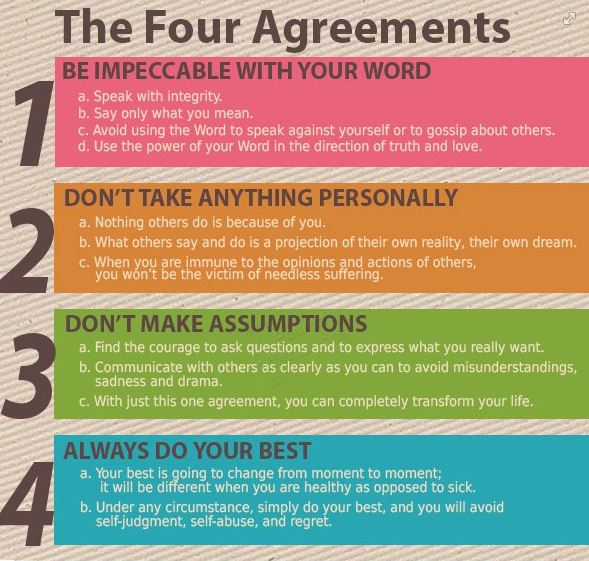 Moving forward, I’m going to stick with these four agreements — especially the second one and the fourth one — so I can stop feeling bad as a result of what other people say and do (or don’t do).