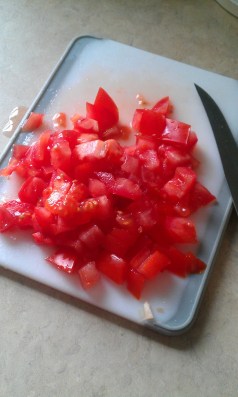 Cut up tomatoes (this isn’t part of the recipe, but remember veggie are FREE so use them as much as you want)