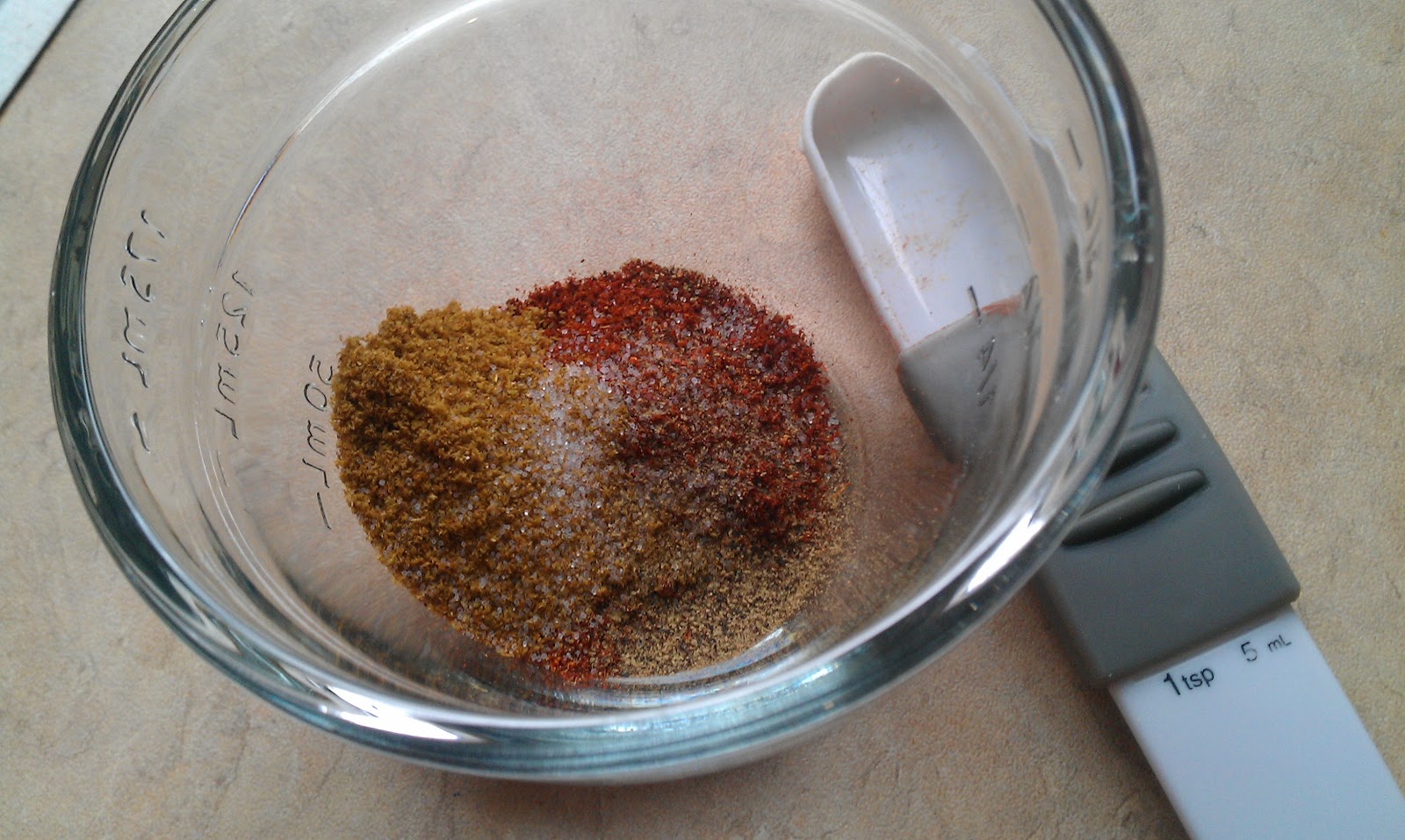 Mix 2 tsp. chili powder, 1 tsp. cumin, 1/2 tsp. salt, and 1/4 teaspoon black pepper