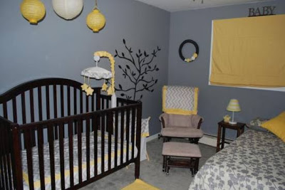 Lindsey’s also keeping the room suitable for guests, so it has a double bed to accomodate the family members who will be visiting after the baby’s born. I love that idea — I wish C’s room was big enough for a guest bed!