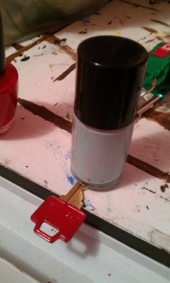 | While I was watching for paint, glue, and Mod Podge to dry (a triple-whammy!) I decided to paint the keys with nail polish. I’d seen the idea on Pinterest, and it worked SO well. Now I’m going to paint every key I get my paws on! |
