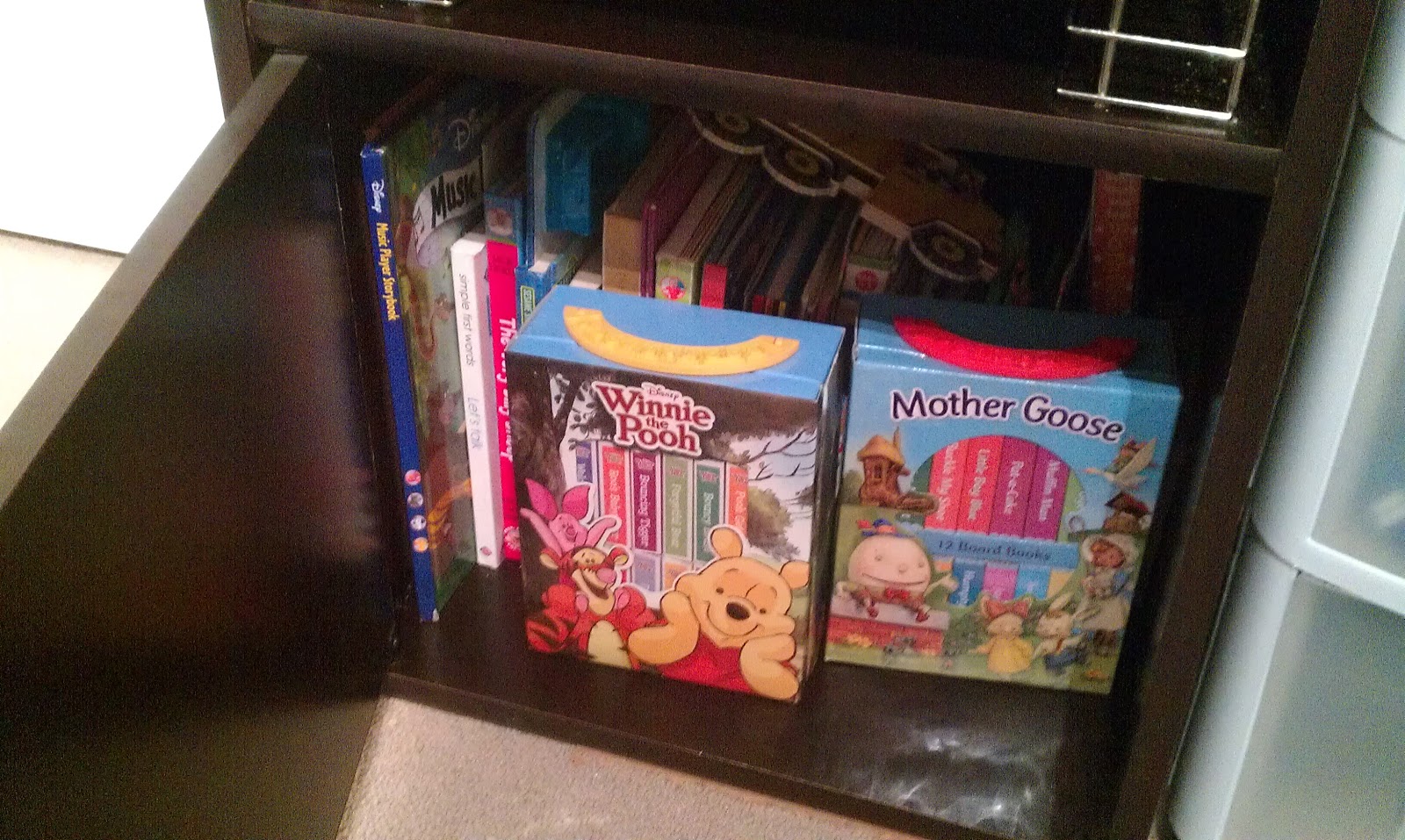 | The movies live in the other cabinet (and Elmo, because D decided it was his house) |