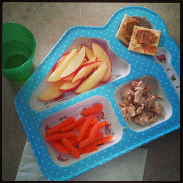 Michelle’s idea for “Muffin Tin Monday,” and it’s been a really fun way to present their food on Mondays. She has some really beautiful creations! Mine aren’t this pretty, but I will probably pull out more stops once the kids are older.