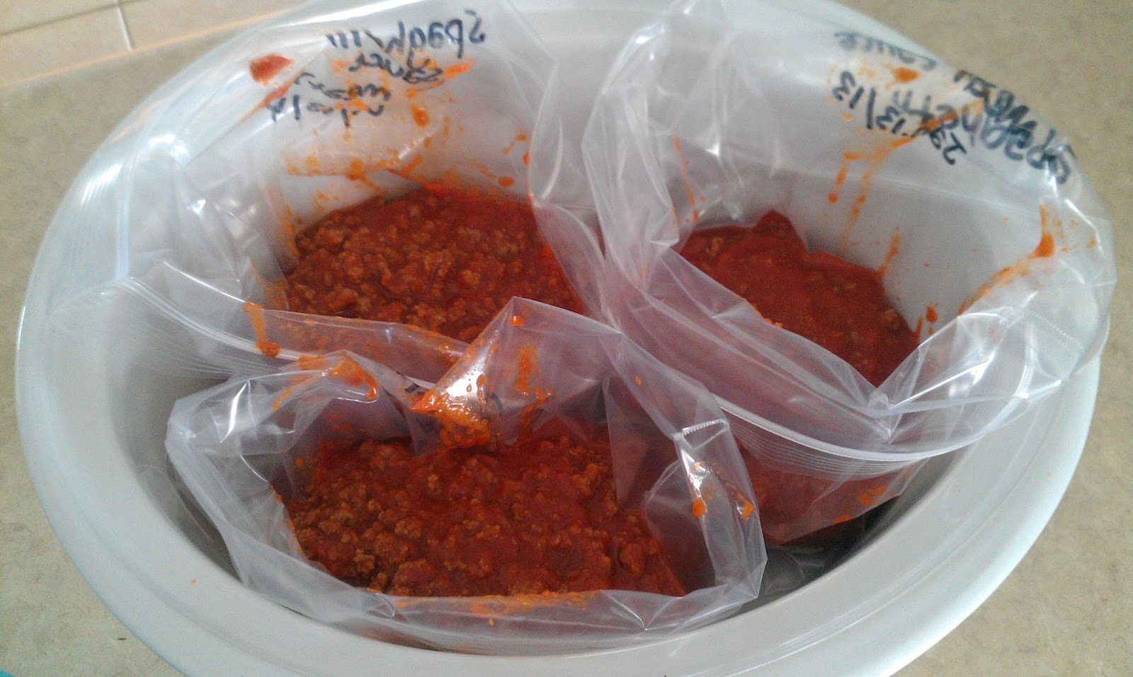 | Stuck the baggies inside the slowcooker to keep them upright … |