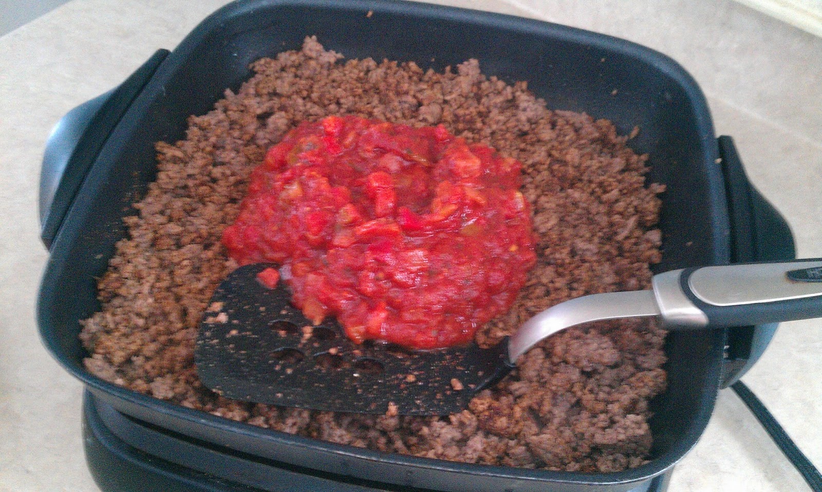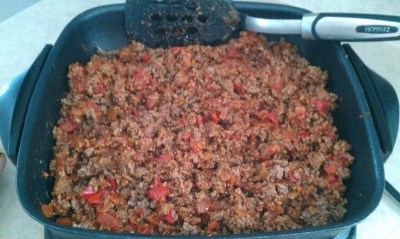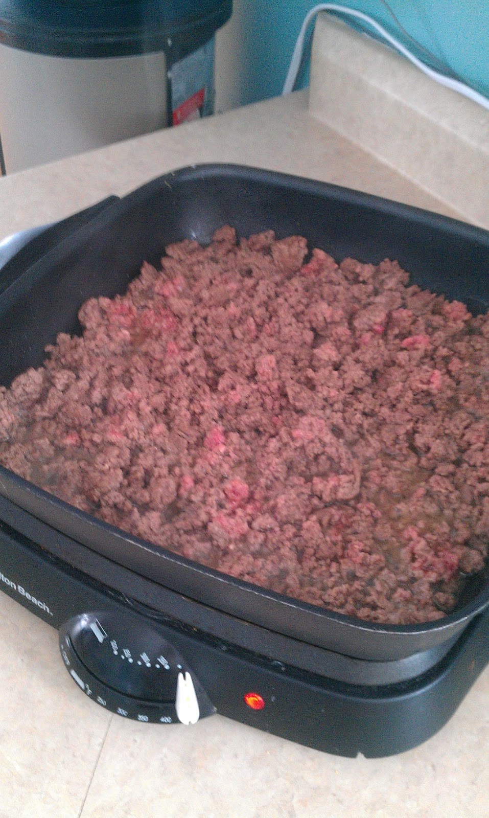 | I got started by browning 2 lbs. of lean beef in my electric skillet thingy |