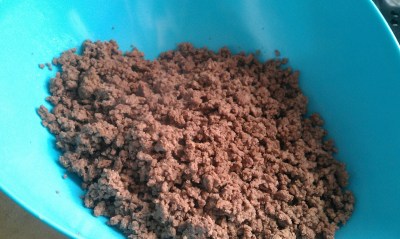 | Next up — browning 2 lbs. of taco meat! We eat a LOT of Mexican food in this house (it’s our favouritest favourite), so I could have probably done 4 lbs., and I might do that next time. |