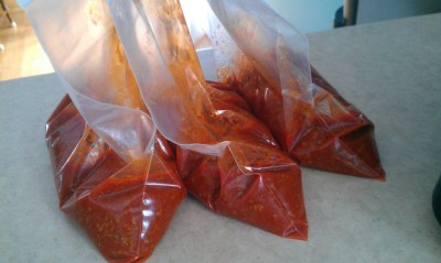 Three bags of taco meat, ready to freeze!