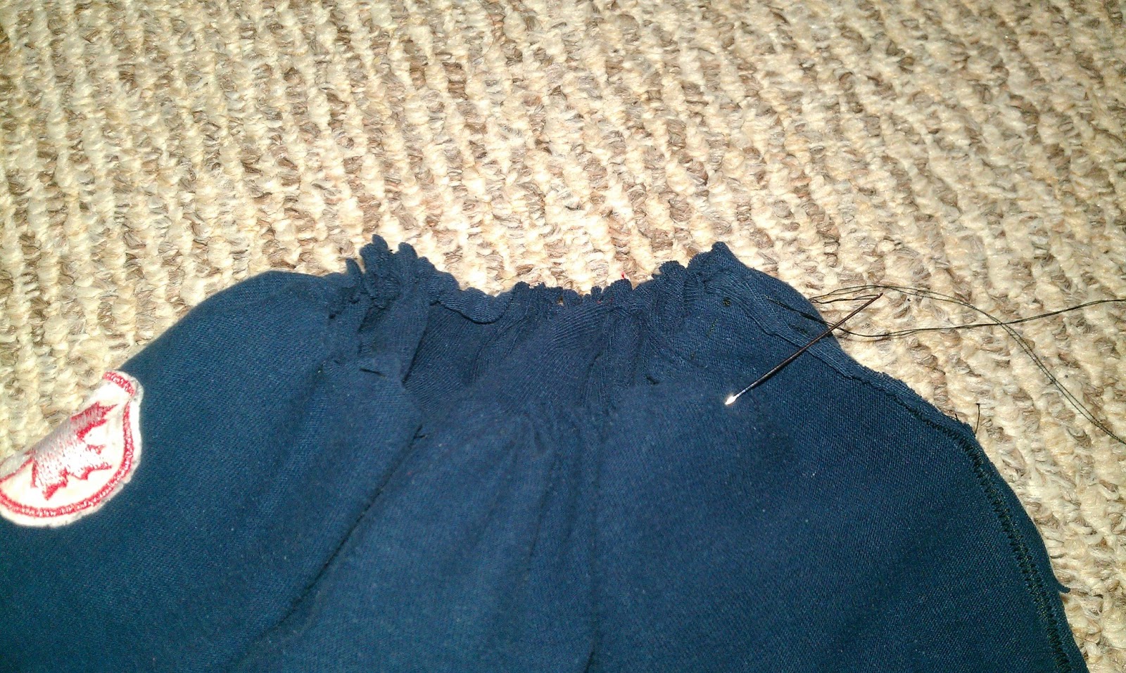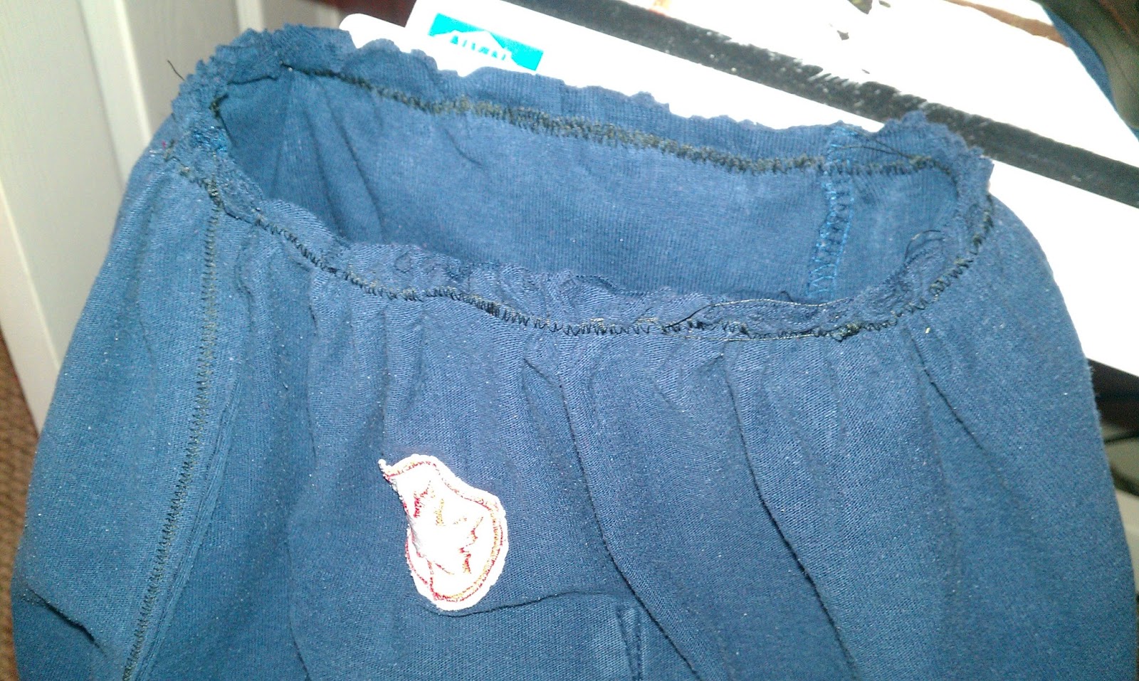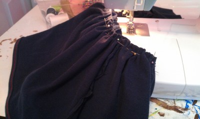| Here we have a skirt that’s sewn on the sides, hemmed and trimmed on the bottom, and craptastically wonky (and undone) on the top). |