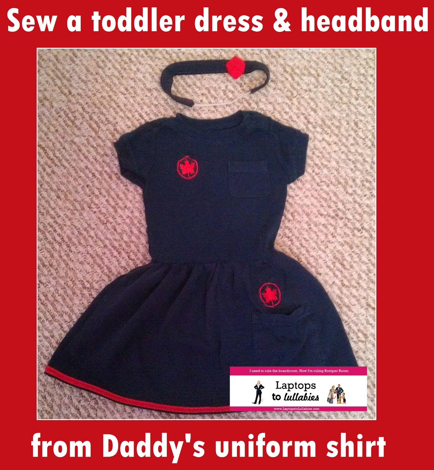 | A sweet little dress and headband for C, made from Daddy’s uniform! |