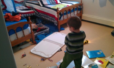 So in place of one of the awesome posts I’m writing in my head (where nobody can see it — yet!) let me leave you with these lovely photos of D’s recent nap-time escapades. Nobody destroys a bedroom like a two-year-old who doesn’t want to nap, let me tell you!