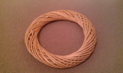 | I tied a knot around one part of the wreath, and started looping! (Lots and LOTS of looping) D and I sang “Jingle Bells” during this part — yes, it is February as I write this. I’m not sure why, but he kept requesting it. |
