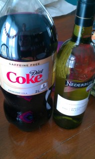Sissy’s essential bevs: Caffeine-free Diet Coke and white wine