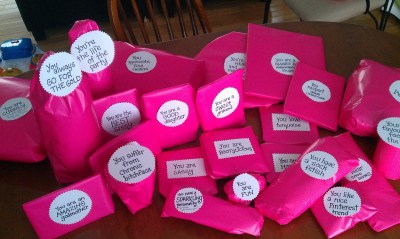 Once I rounded up all of my items, I wrapped each one individually and put a label on it that described something we love about Little Sis. I don’t know if I can remember them all, but here’s a sampling: