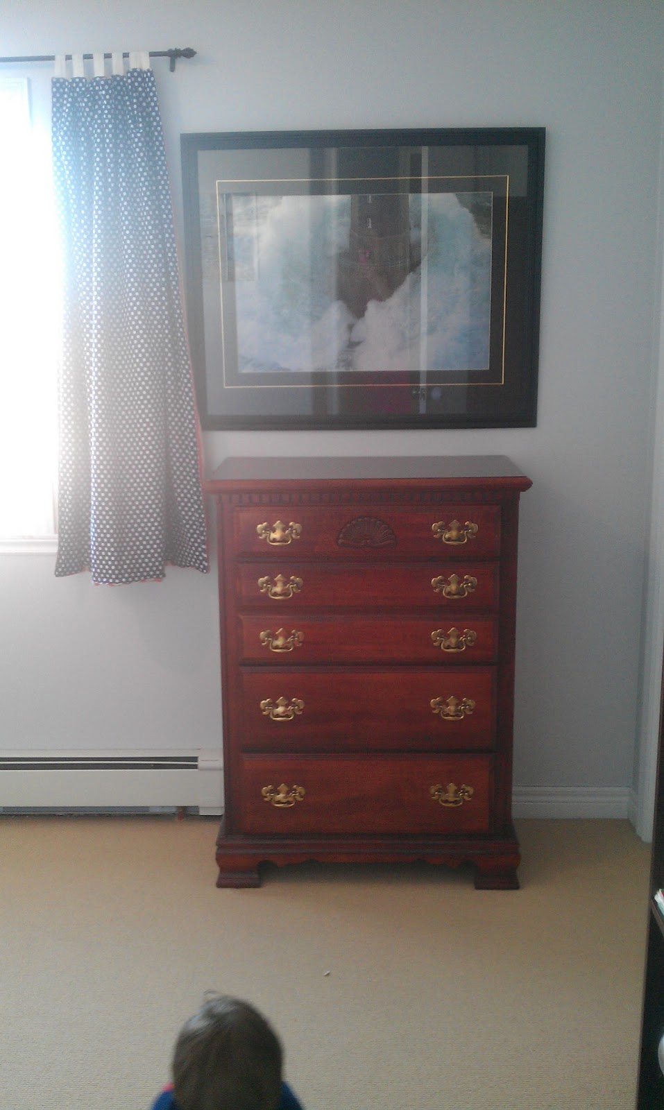 I don’t have a photo of this, but his dresser had been in our bedroom since the Great Climbing The Dresser and then Crashing It Down On Top of Him Debacle of 2012.