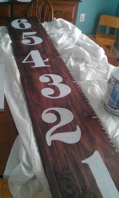 I sort of swiped the edges of the numbers, and smeared it around until I got a good “old” look. When I used too much stain, I used more white paint to highlight some of the areas again, until I liked the look …