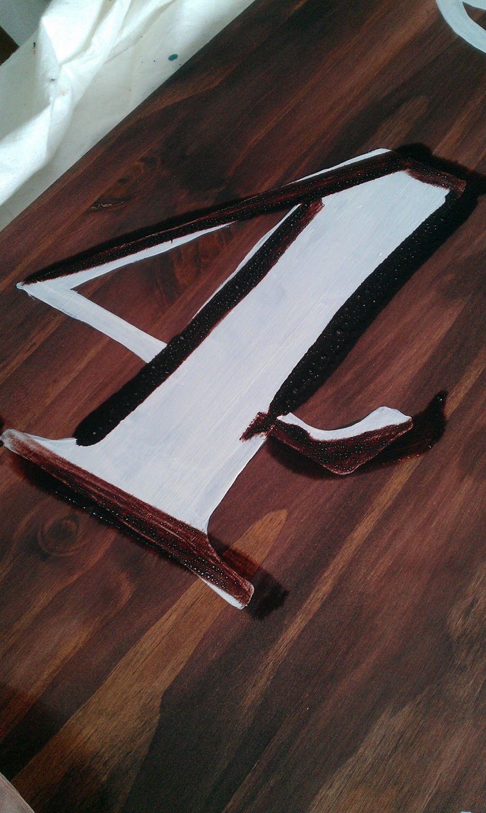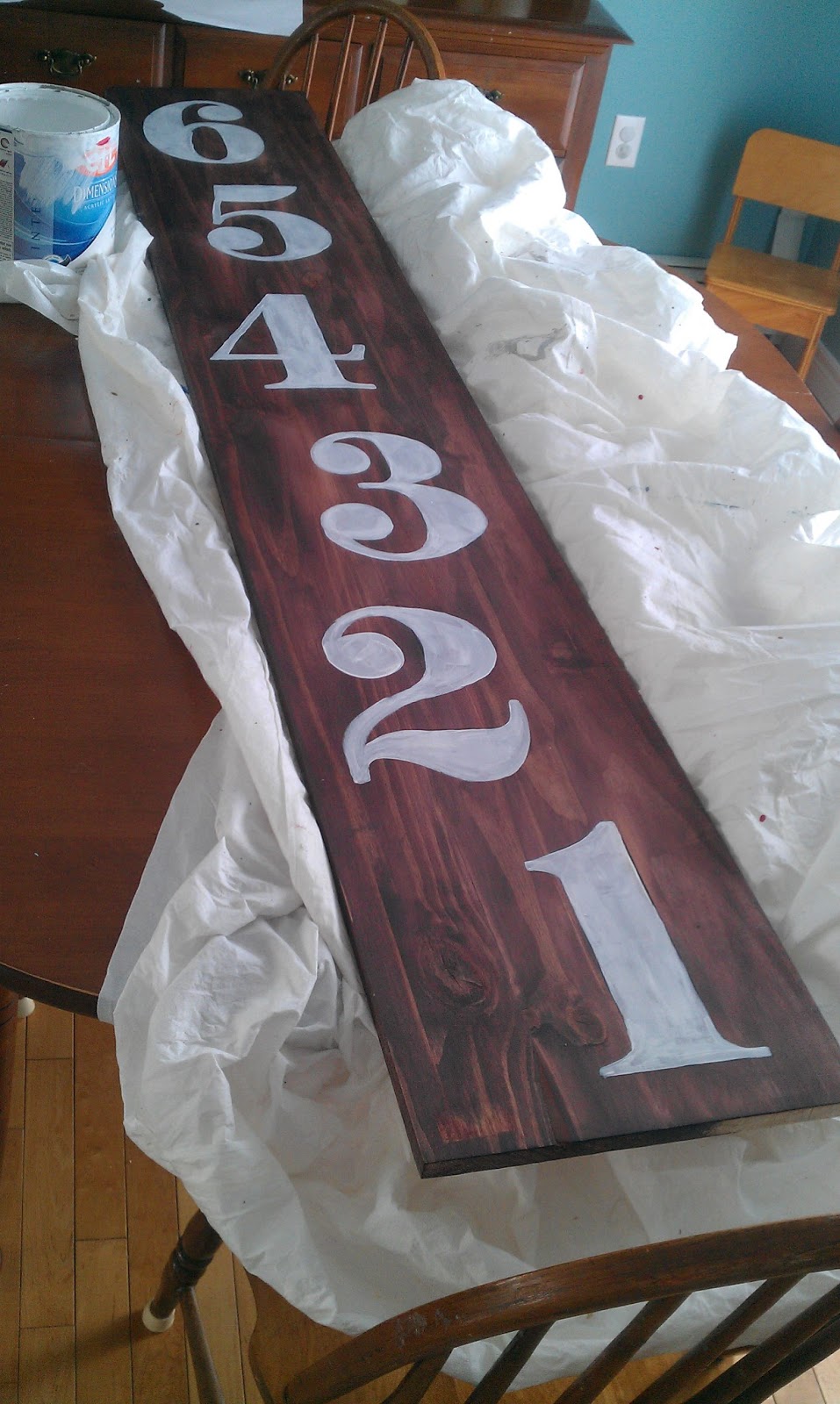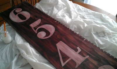 I sort of swiped the edges of the numbers, and smeared it around until I got a good “old” look. When I used too much stain, I used more white paint to highlight some of the areas again, until I liked the look …