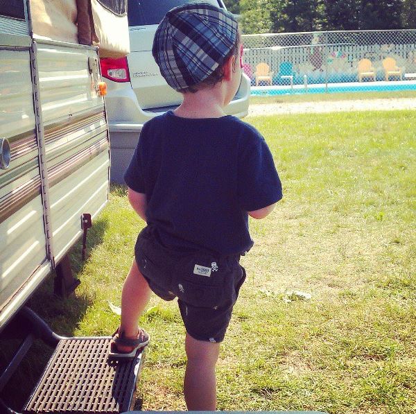 was the only one at the campground that didn’t have its own bathroom doesn’t have a bathroom). But I was glad we’d packed a stand-alone potty to keep in the trailer. Before we put D to bed, we explained he could crawl down in the middle of the night and use it to pee if he had to go. We both totally assumed he would probably have an accident or freak out and cry for us to help him, since it was an unfamiliar place. But we woke up in the morning and — lo and behold — there was pee in the potty. He hadn’t even woken us up when he went. Good job, kid!