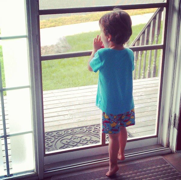 | D just stood at the front door shouting “Ha! Ha!” I asked him what he was laughing at and he said he was “talking to da birds.” Sure enough, a crow answered “Caw! Caw!” and D continued yelling “HA! HA!” |