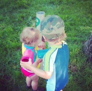 - We had reinforcements! My lovely Little Sis was camping at the same campground with her awesome friends (we crashed their trip, YOU’RE WELCOME!). So it was INCREDIBLY AMAZING to have babysitters nearby. We tried not to overstay our welcome when we visited their tent site (I think), and they were so sweet about playing with the kids. We even got to hang out with them in the river for a while, as they tubed and floated (and drank beer) and we kid-wrangled and floated (and deposited our kids in their inflatable boat for rides). It was so fun for D and C to be able to go on “adventure walks” to find their Aunt Lely’s site, too. And they had a prettttty awesome time playing with the water spiggot, too.