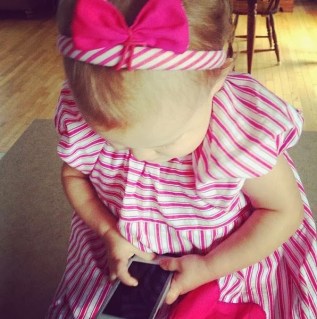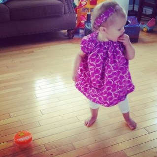 Yes, she wears dresses just about daily (if she’s not in a dress, she’s probably in jeggings and a cute top), and pigtails with bows and/or barrettes are also daily. I mean, are you really surprised? I’m the girl who was nutty about the thought of having a daughter someday, because bows, glitter, pink, ribbons? That’s MY JAM!