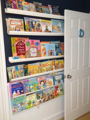 So that’s our rain gutter bookshelf adventure! Now want to see the rest of D’s “new-ish” room?
