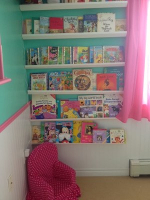 So have I convinced you to toss out all of your crappy bookshelves and buy some plastic rain gutters? If you need any more motivation, here’s the set we did in Miss C’s bedroom. #lovethem