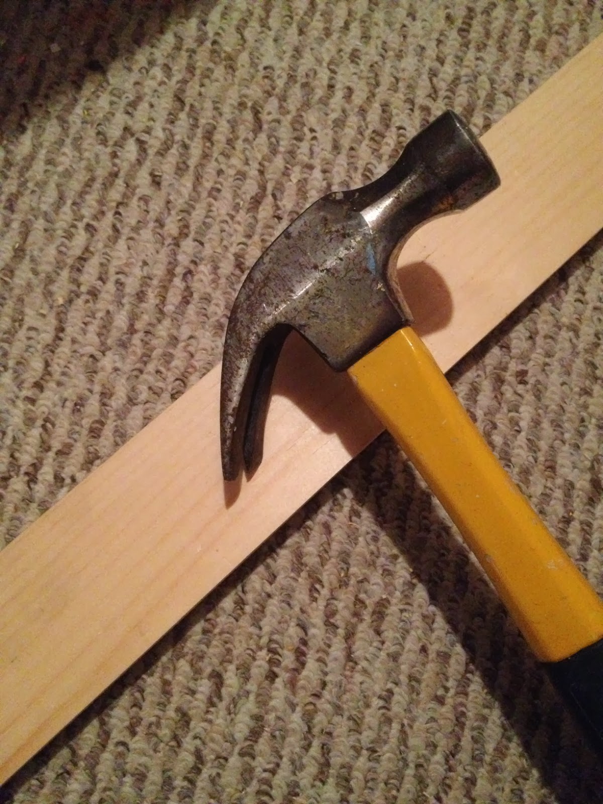 The mirror sat in our basement for two entire years. Then I finally got motivated, harangued Darling Husband to buy four cheapy boards for me, and set to work banging them up.