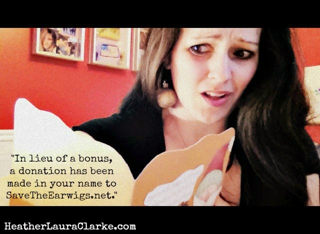 Employee of the Year TWO YEARS RUNNING!Signature cocktail: Diet Coke. Of course.This is what a buffet looks like … when it’s for one person.We kicked off the party with a few games!Can’t forget the Secret Santa gift exchange!Woohoo! I won the 50-50 draw!Selfie time!“In lieu of a bonus, a donation has been made in your name to SaveTheEarwigs.net.”This handsome guy came downstairs just in time for dessert. And this lovely lady joined me for dancingMerry Christmas from all of us (a.k.a. me) here at HeatherLauraClarke.com.Thank you to my AMAZING clients for another wonderful year. I’m so grateful to be working with people and products that I believe in.