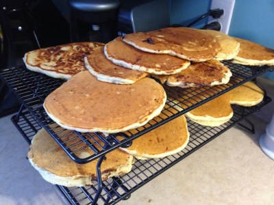 (My seven-year-old electric griddle died while making the FIRST pancake, so I had to do all of them on the stove in a frying pan. Like a peasant.)