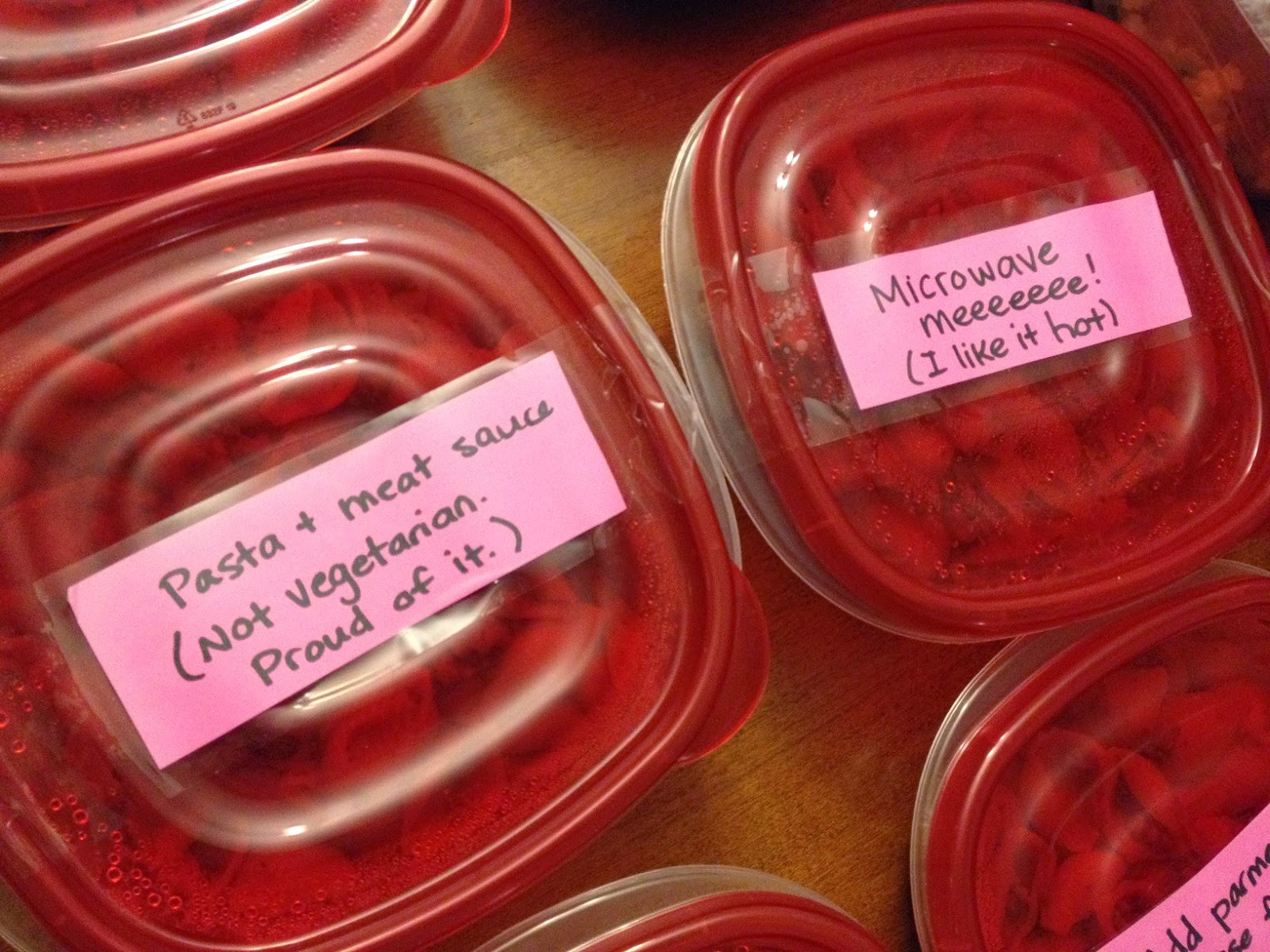 I kept it simple because I wanted to make dishes that would freeze well (and, you know, because I’m an incredibly simple cook). I filled a bunch of containers with individual portions of homemade meat sauce and shells, and another bunch of containers with my famous turkey meatballs {recipe here} and brown rice, with veggies.