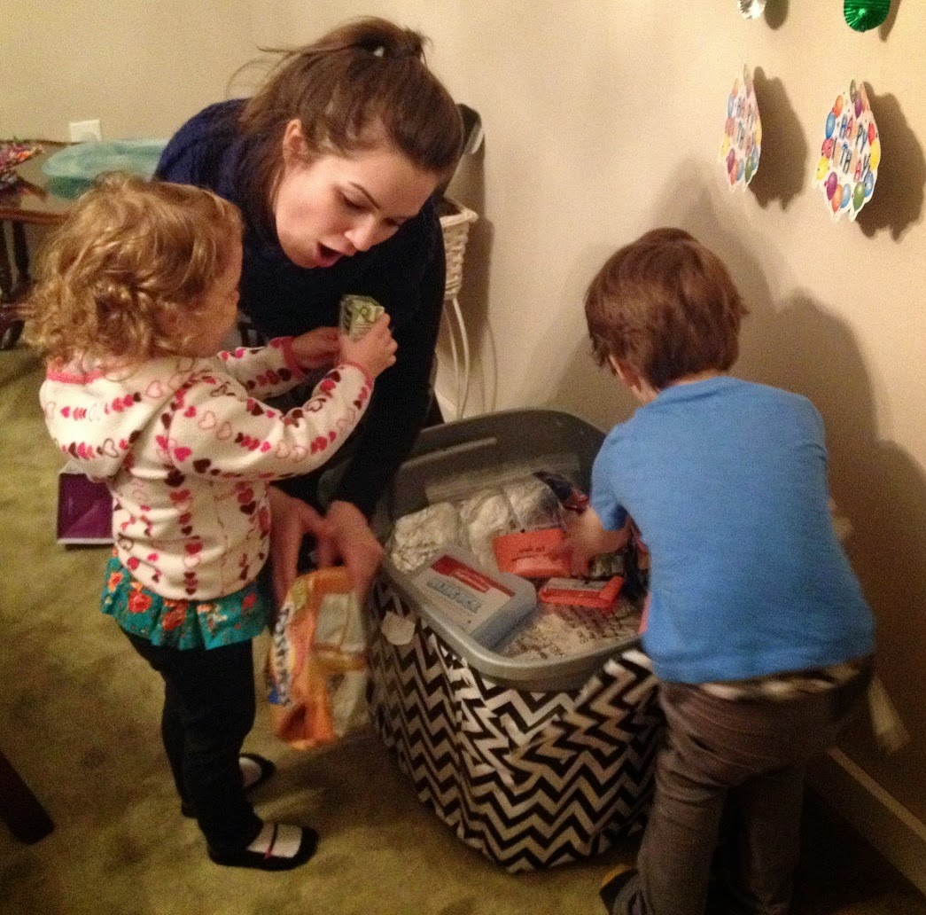 She had a few helpers when it was time to open it …