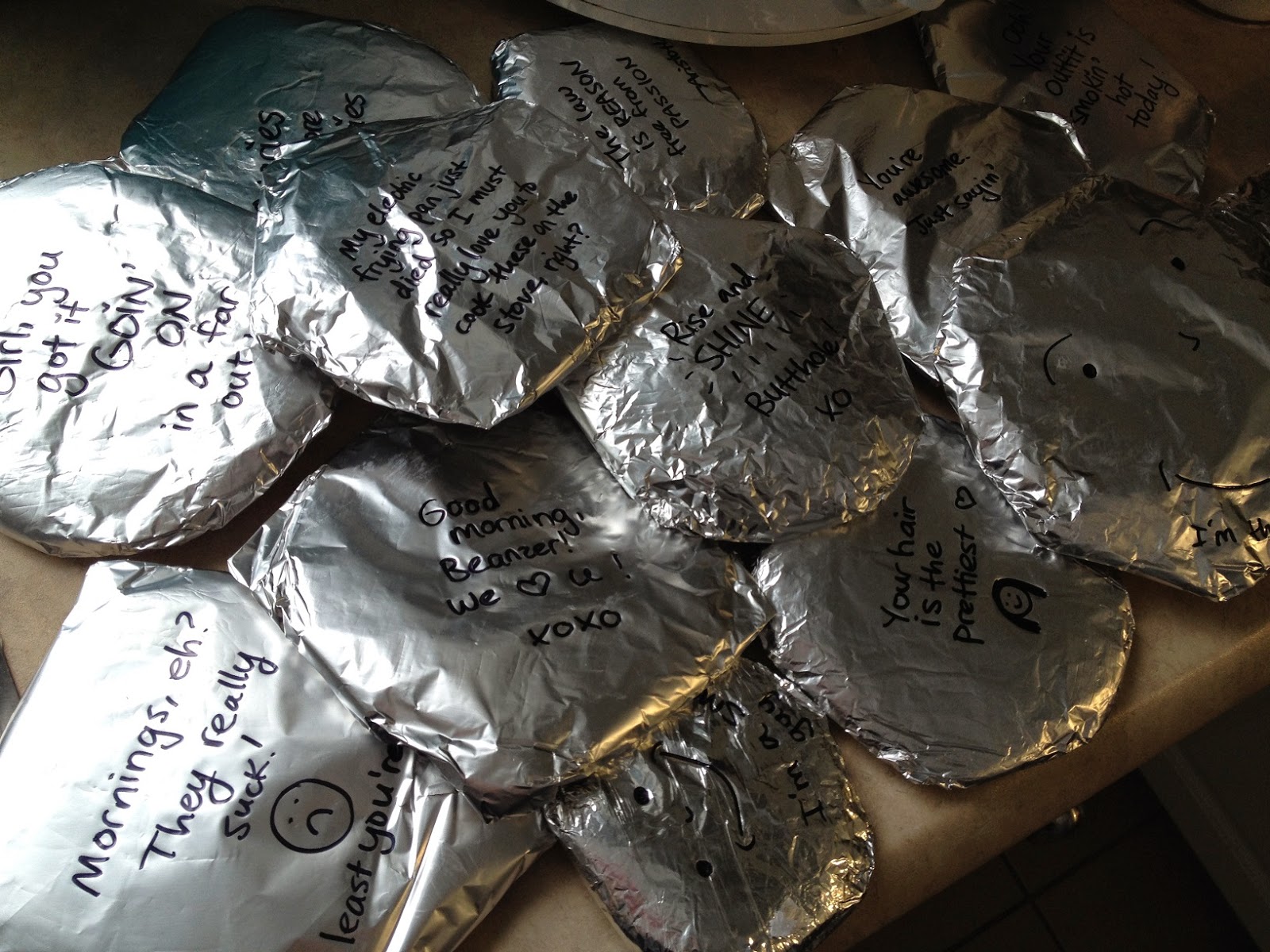 I had a bit of dough leftover, so I decided to make giant-size PMS peanut butter cookies with chocolate chips and M&Ms. Each package contained one for her, and one for her roomie. There’s also a disclaimer that it’s totally OK to just eat the dough. #YOLO