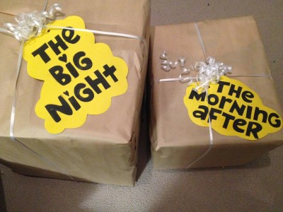 For Little Sis’s 26th birthday, I made a “Big Night” kit (everything she needed for a party, including some alcohol, yeah) and a “Morning After” kit (everything she needed for a day of feeling blah on the couch).