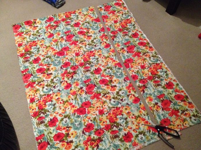 Essentially, a curtain panel is just a rectangle of fabric that’s wider than half of your window (so you get some nice bunchiness) and slightly longer. That’s it! You get two rectangles of fabric, and you’ve got two curtain panels.