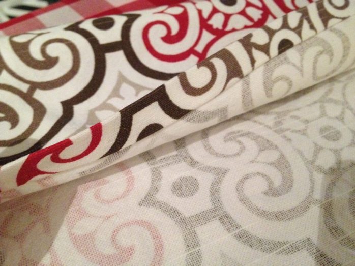 They were both from the home decor fabric section, which is pricier because you’re getting weightier fabric, but you can easily make curtains from the regular, thinner fabrics.