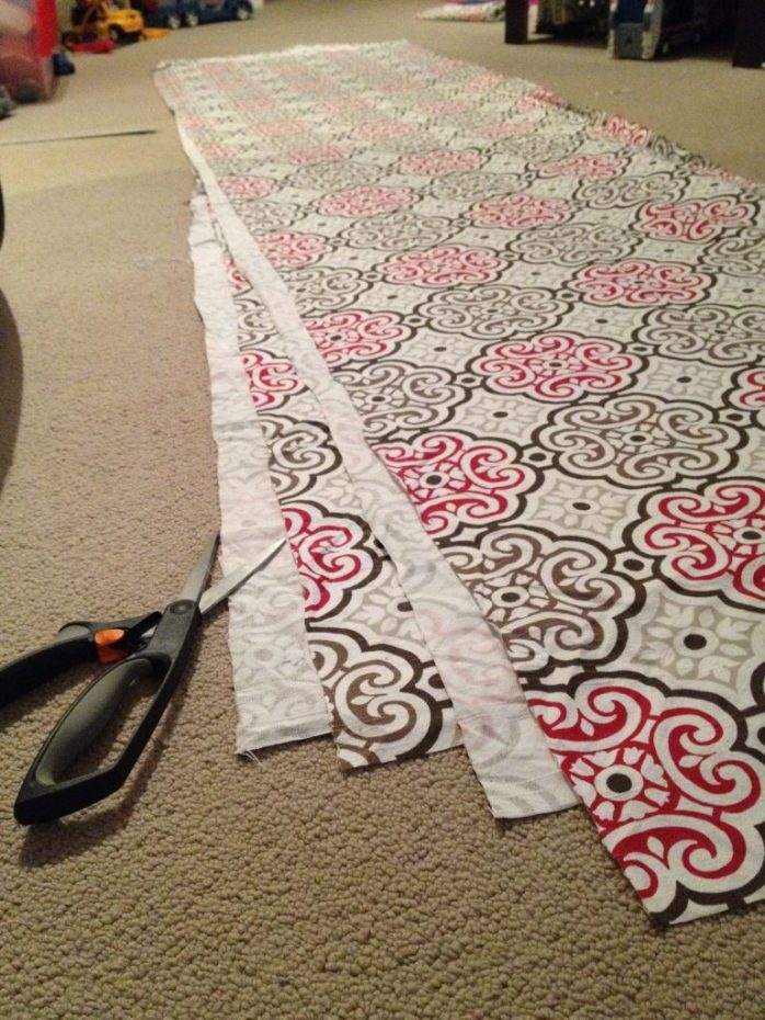 I chose a thick canvas material with a red and taupe pattern for the bedroom …