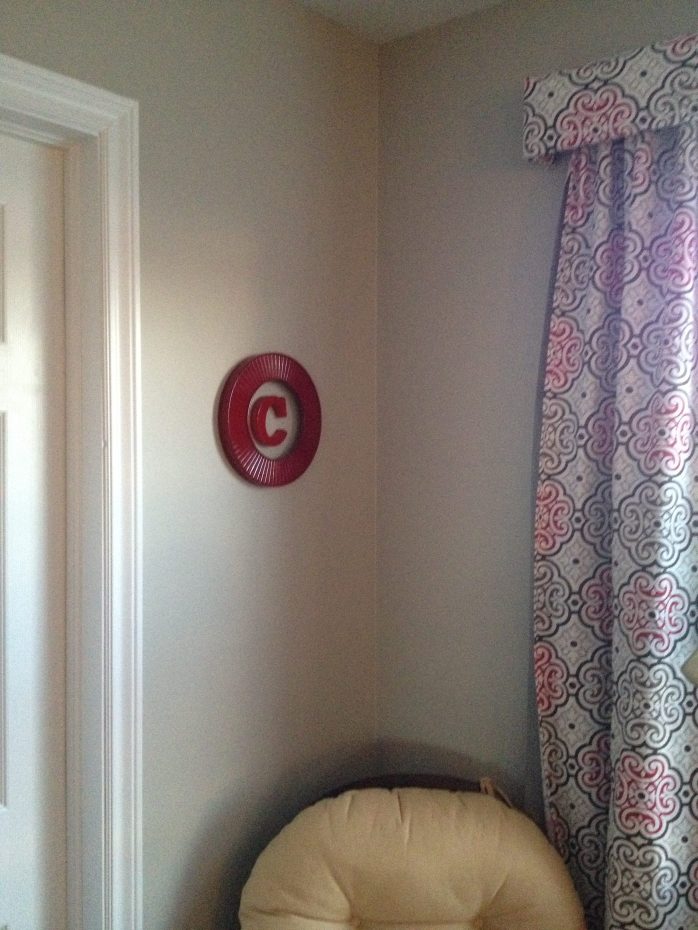 Everything was unscrewed, sprayed with a few light coats of paint (red for the bedroom, yellow for the bathroom), and screwed back together. We had a casualty with one of the red mirrors, though, so I planned something different for it.