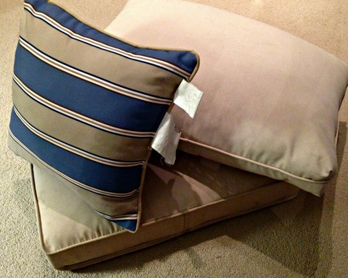 I measured them and told her how much fabric to buy, and didn’t give it another thought. I hadn’t sewn with outdoor fabrics before, but I’d certainly made a lot of throw pillow covers.
