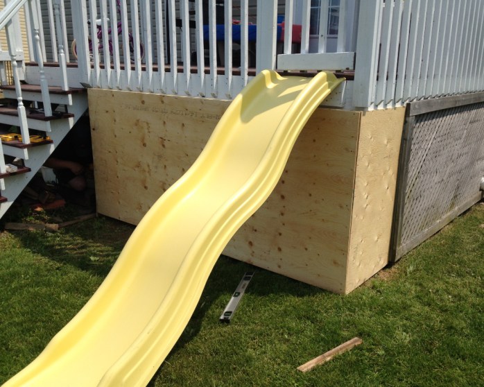 Shortly after we moved in, I noticed that one of our neighbours had a slide coming off their back deck, so I promptly copied them. It was such a great idea!