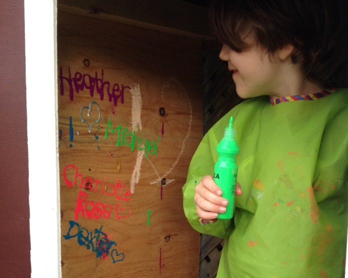 The finishing touch was letting the kids decorate the interior walls with squeezable bottles of neon poster paint. It took days for all of the drips and splatters to dry, but they were psyched to have a chance to go crazy and paint their “house” any way they liked.